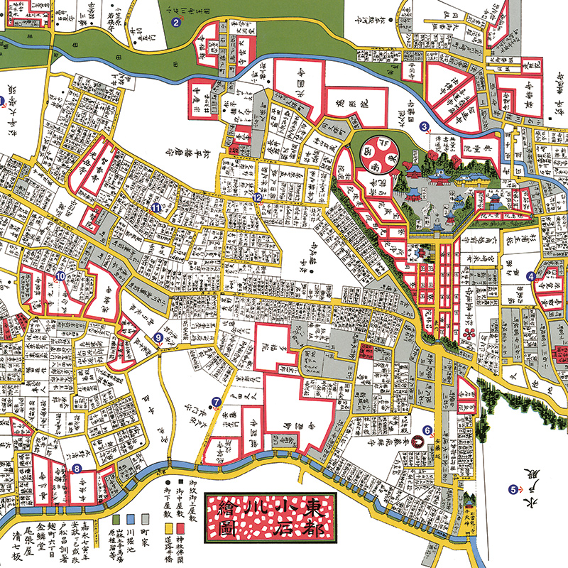 『切絵図・現代図で歩く 江戸東京散歩(尾張屋清七板)』人文社:東都小石川絵図 1854年(嘉永7年)