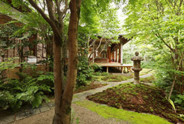 広間の窓越しに眺める中庭は、都会の喧噪とは無縁の静けさ。春は生命の息吹を、夏には一服の清涼感を、秋には燃える紅葉を、冬は凛と張りつめた気高さを、四季折々の表情で参列者の目を和ませてくれるお庭です。